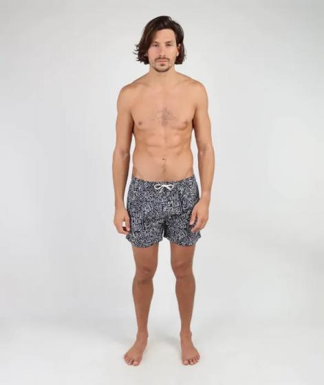 Half allover print volley shorts Repreve recycled fabric 15′ volley shorts. Our model is 1m90 tall and wears a 32 size.